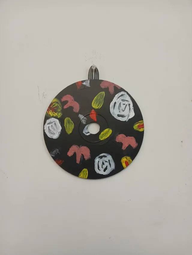 - Base nera con disegni colorati.