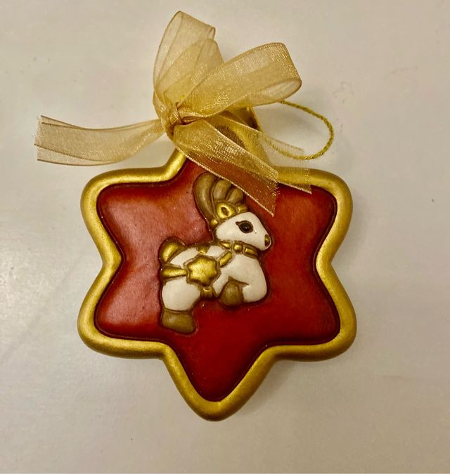 decorazione per albero di Natale della Thun colore rosso e beige in ceramica, altezza 8cm circa