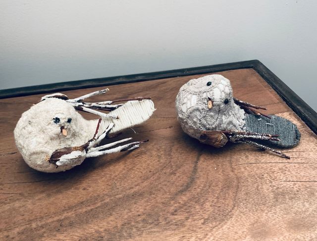 In materiali naturali. Uccellini decorativi da appoggiare o appendere. Disponibili più pezzi.
