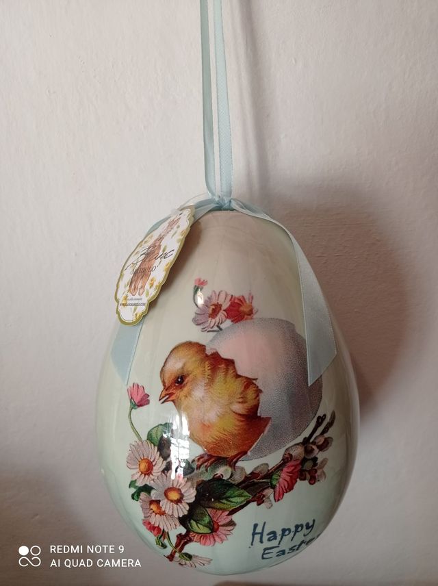 Dettagli del prodottoDecoro uovo con pulcino, marca Blanc Mariclò. Dimensioni L 14 x P 14 x H 20. Materiale: POLYFOAM .Dolcissimo uovo da appendere grazie al nastrino. Nuovo con cartellino.