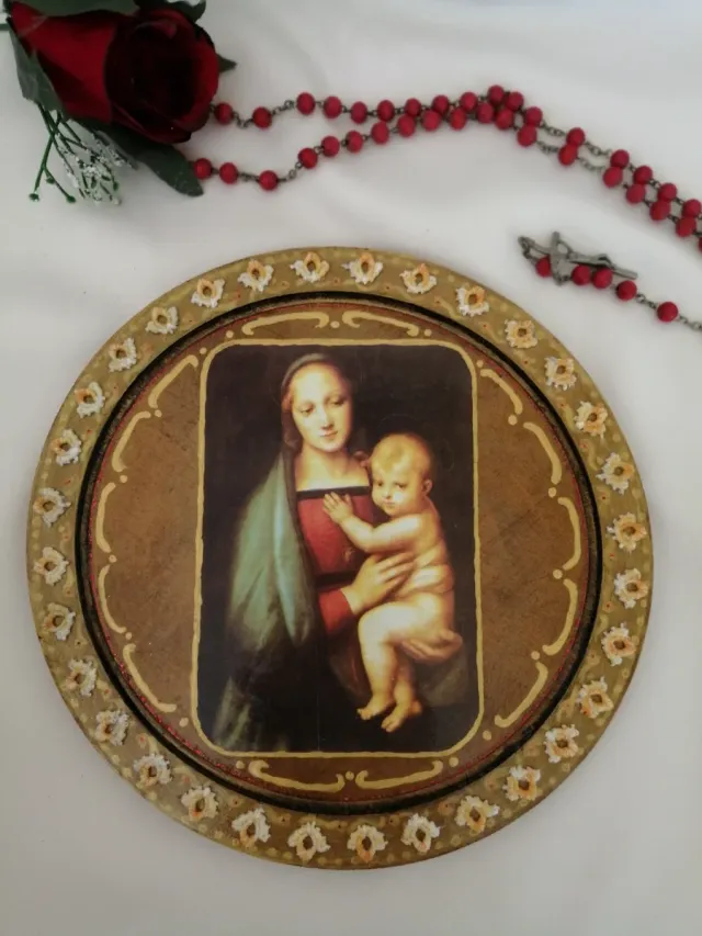 Decoupage tondo legno Madonna Bambino Oggettistica