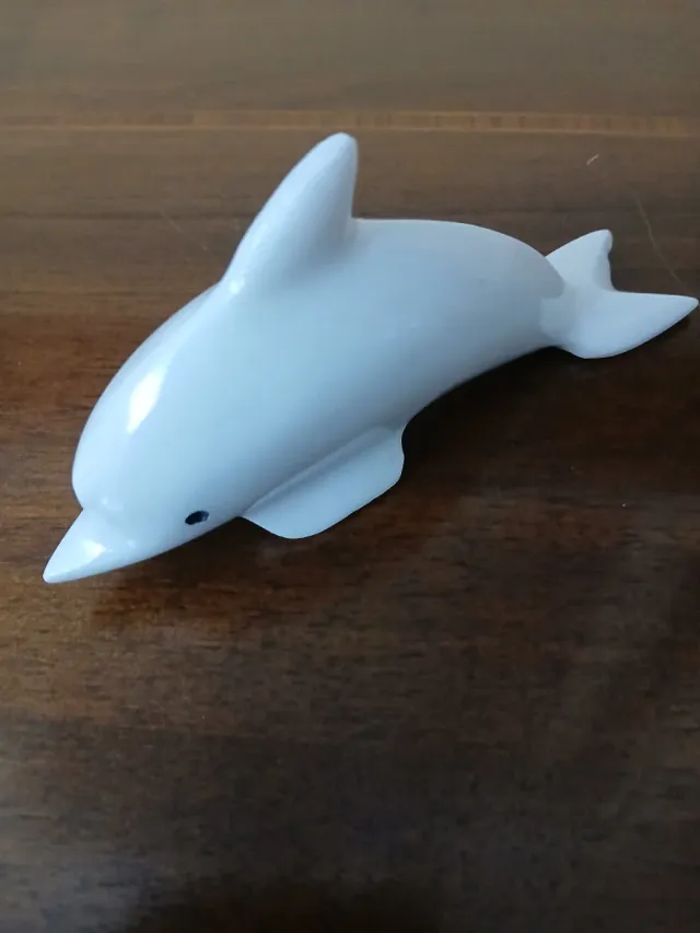 Grazioso delfino decorativo in marmo bianco. Un elemento d'arredo che aggiunge un tocco di eleganza. - Materiale: Marmo bianco. - Design stilizzato.
