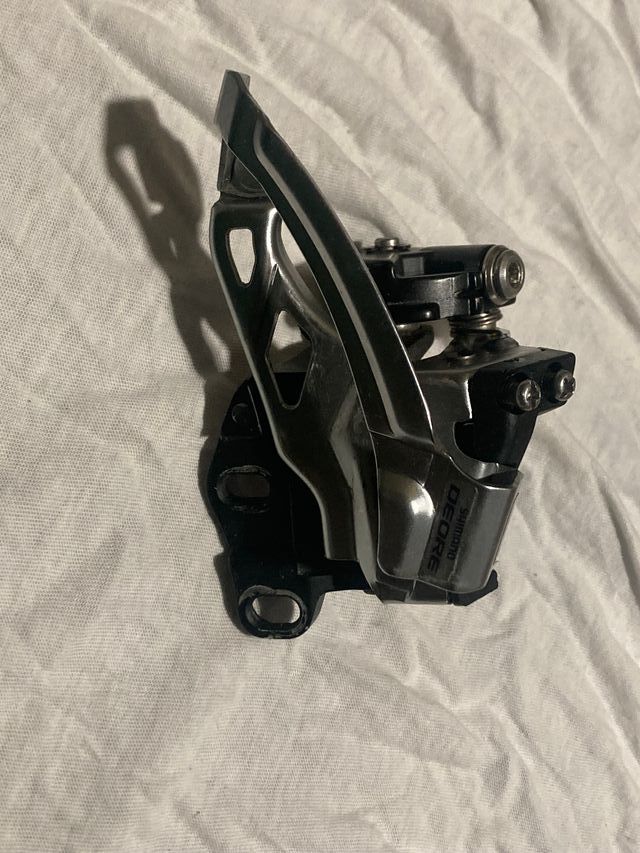 Deragliatore anteriore Shimano Deore. Dual-pull Direct mount - Tecnologia Dyna-Sys. - Design in metallo e plastica.
