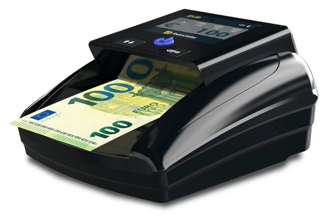 Detectalia D7T+, Verificatore banconote false, Testato per EUR e USD, con 7 Controlli di Contraffazione, Dotato di Allarme, Display TFT, Certificato BCE
