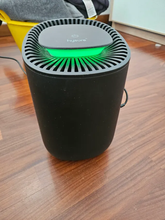 Mini Deumidificatore Hysure, vedere ultima foto per dettagli. Funziona molto bene. Difetti: la ventola a volte fa rumore all'accensione che poi passa dopo 1 min circa