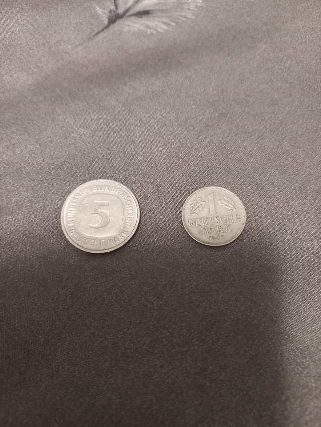 Eine Mark und Fünf Mark tedesco 1 mark anno 1967 5 mark anno 1984 a offerta