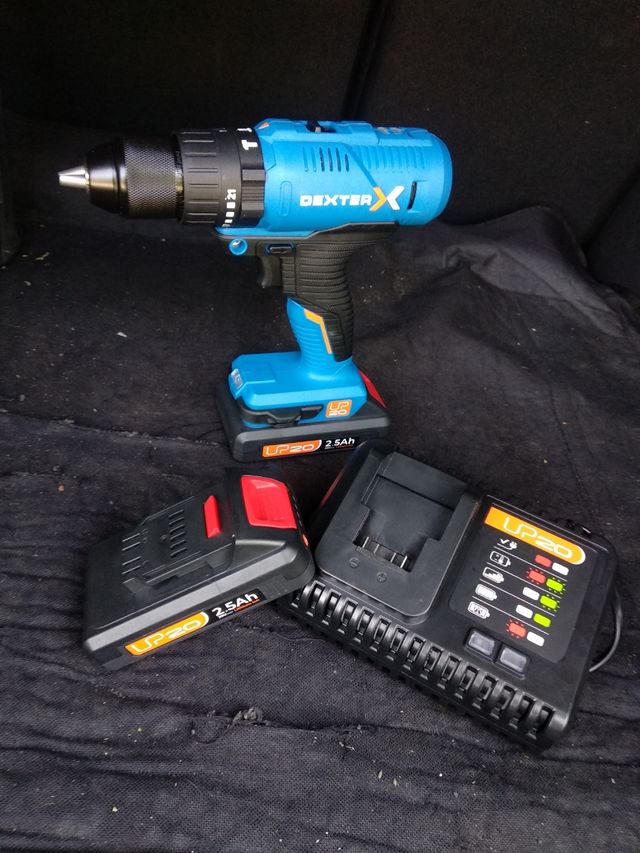 Trapano a percussione Nuovo a batteria DEXTER 20VID2-50A.11A 20 V, 2 Batterie 2.5 Ah,
