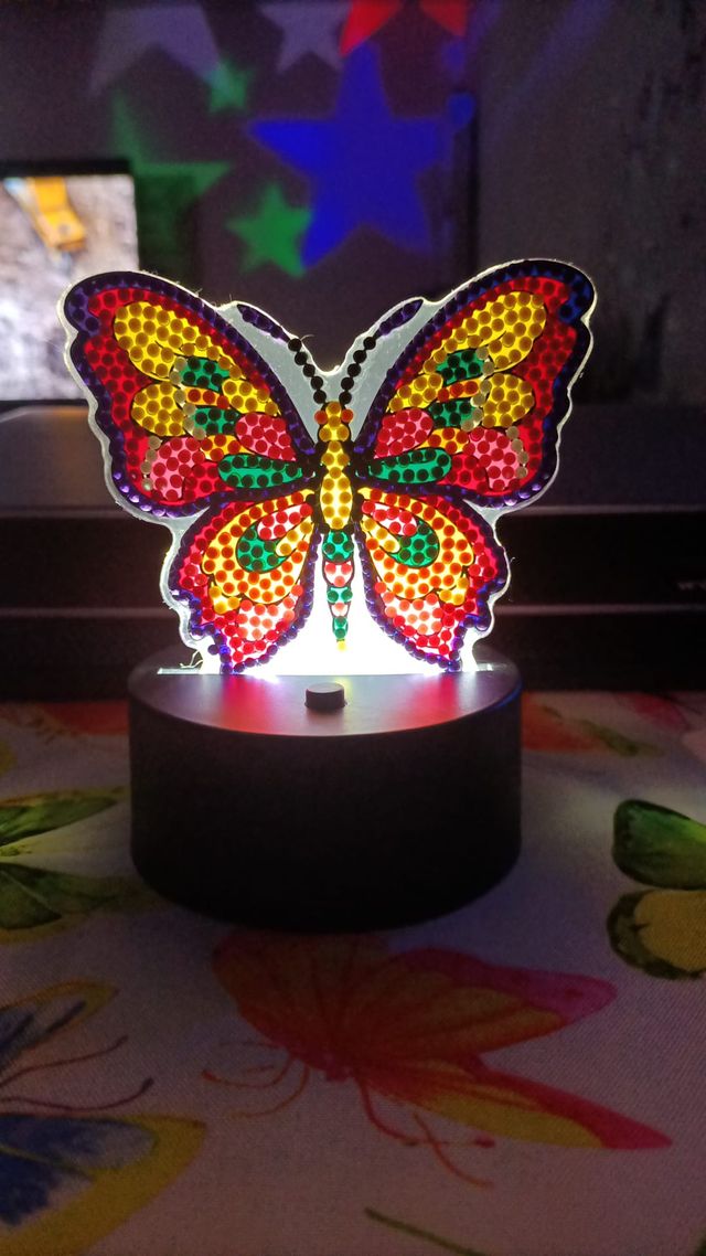 Dettagli del prodottoBellissimo diamond painting a forma di farfalla, realizzato a mano e dotato di illuminazione LED (8,5x10,5 cm + base LED 8,5x4 cm)