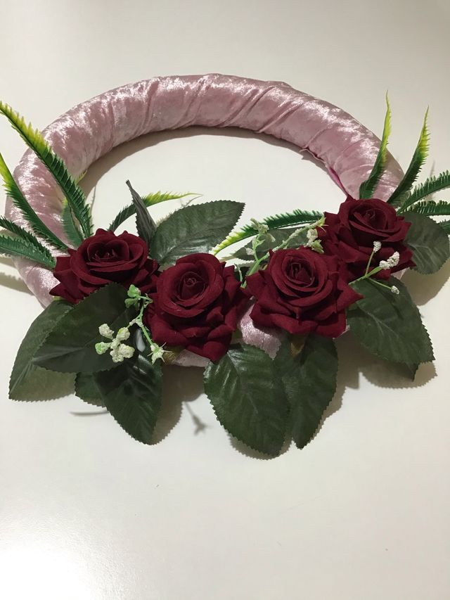 Realizzato a mano, dietroporta in tessuto colore rosa antico, con fiori.