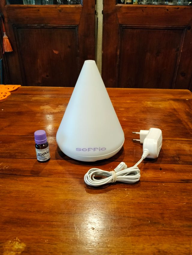 Dettagli del prodottoVendo "Soffio", Diffusore di olii essenziali ad ultrasuoni con lampada per cromoterapia ed aromaterapia, in pochi attimi diffonderà nell'ambiente una delicata profumazione.