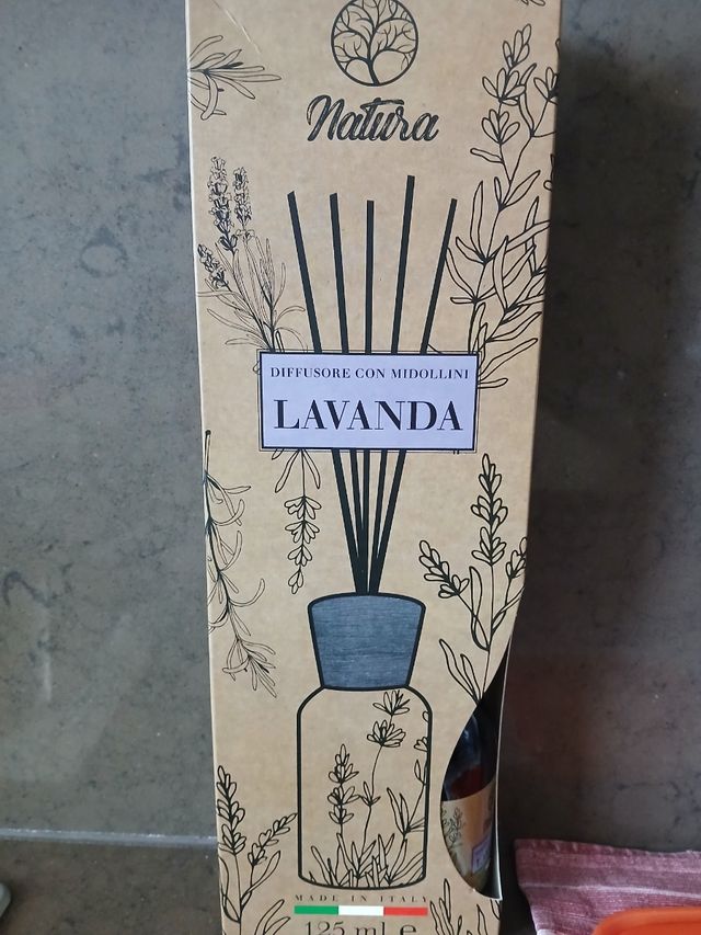 Diffusore per ambiente con midollini, profumazione lavanda, 125 ml, nuovo mai usato, marca Natura, made in Italy