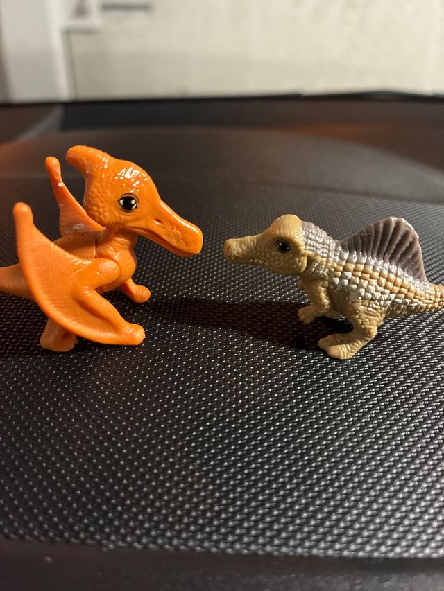 Due figure di dinosauri dalle uova Kinder. - Figura di Pterodattilo arancione - Figura di Spinosaurus 1 euro ciascuno