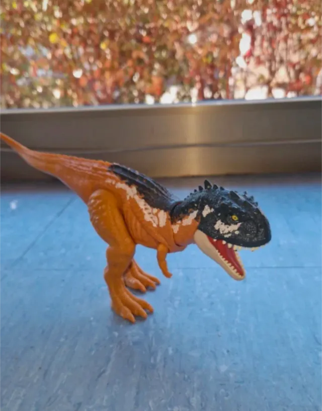 Dettagli del prodottoDinosauro giocattolo ispirato a Jurassic World. Questo dinosauro ha una colorazione arancione vivace con dettagli neri e bianchi.