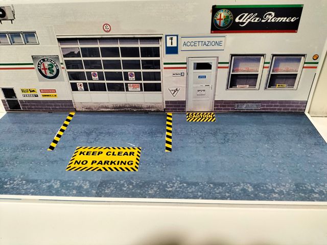 Dettagli del prodottoDiorama Officina Garage Alfa Romeo vista esterna in scala 1/64 , NO modellino Alfa