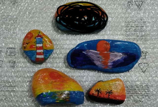4 sassi disegnati e dipinti a mano con paesaggi di mare