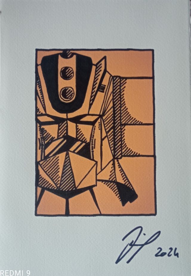 Disegno a mano libera, con pennarello, Goldrake, con certificato, artista Luca Ferrari, carta di Messina fatta a mano.