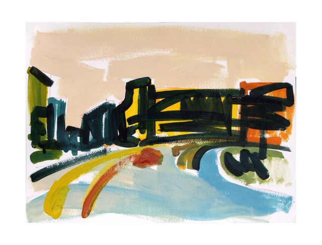 Dipinto su carta realizzato a mano. Acrilico e smalto 26x36cm. Serie città.