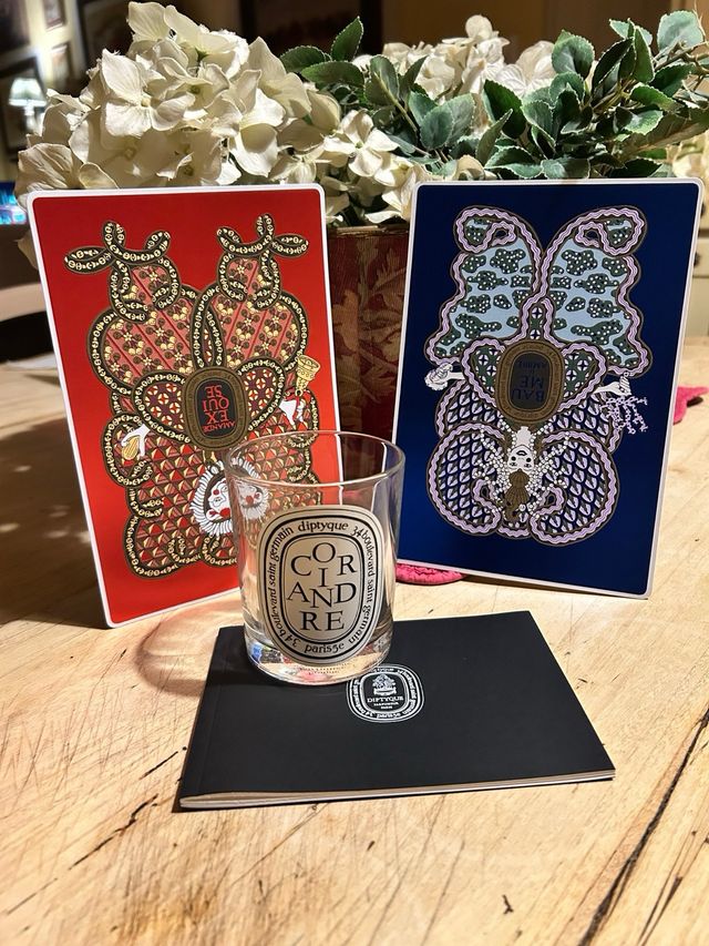- Portacandela Coriandre (190 gr.) vuoto ma perfetto - 2 grandi biglietti decorati - Notes tascabile con disegni e pagine vuote per schizzi