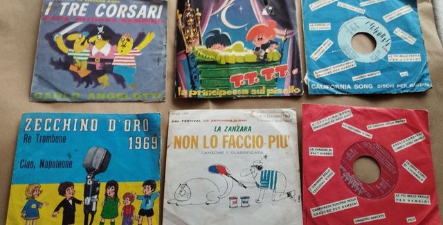 5 dischi 45 giri canzoni dello Zecchino d'oro e un disco con fiaba.
