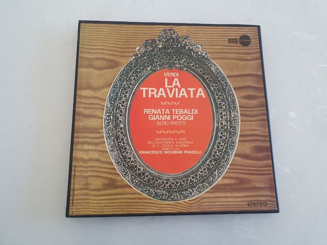 Dettagli del prodottoInestimabile pezzo da collezione composto da 3 dischi dell'opera di Verdi LA TRAVIATA. Interpretata dall'impareggiabile Renata Tebaldi. Inclusi nella collezione i testi dell'intera opera, per immergersi nei dialoghi di Violetta e Alfredo...
