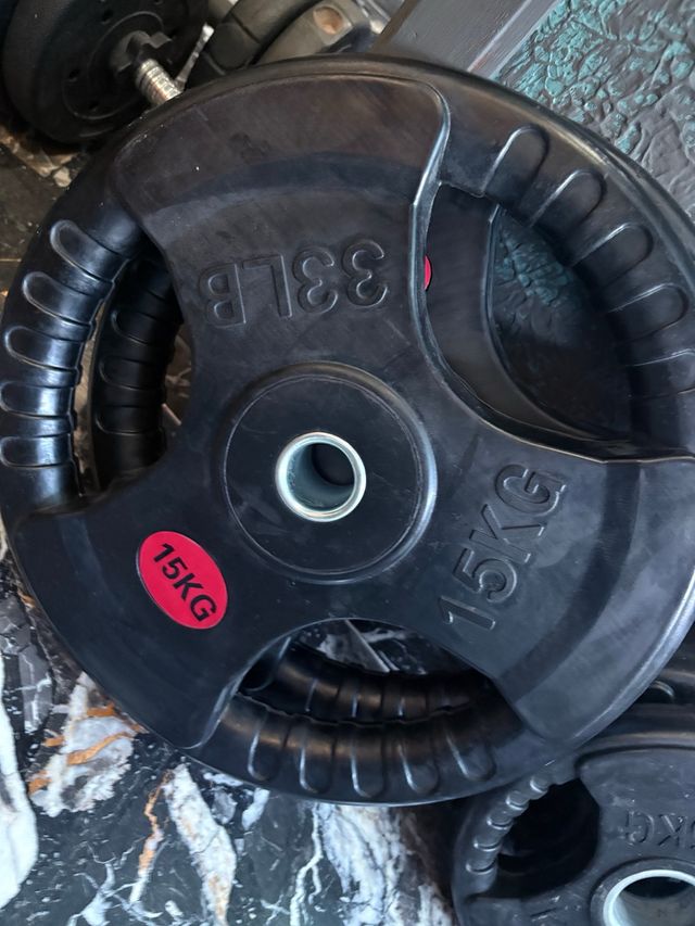 Dettagli del prodotto2 dischi da 15 kg ciascuno. Ideali per il tuo set di attrezzature da palestra. Colore nero. Con maniglie per una presa migliore. Marcatura del peso in KG e LB. 30 mm. La descrizione è stata tradotta automaticamente.