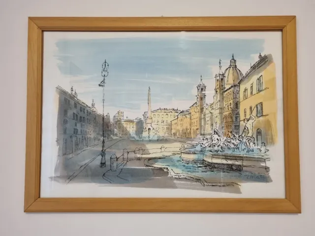 Disegno acquerellato con cornice in legno