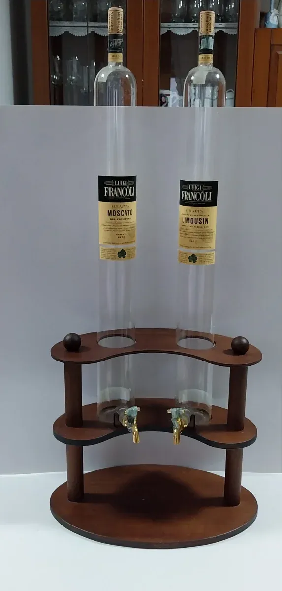 Dettagli del prodottoElegante dispenser doppio per vino e liquori, perfetto per ogni occasione.