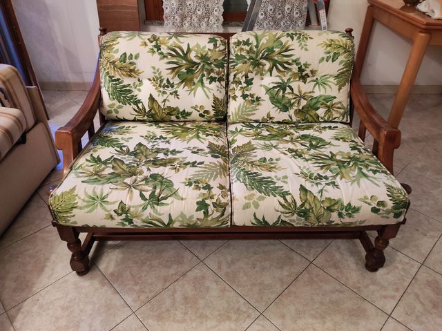 Divano 2 posti legno/tessuto floreale (bianco/verde) dimensioni: altezza 80 cm, larghezza 122 cm, profondità 85 cm. Ritiro presso CODOGNO (LODI)