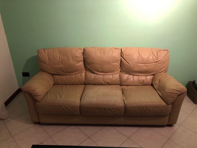 Color beige in simil-pelle, un po’ scolorito sulle sedute ma super morbido.