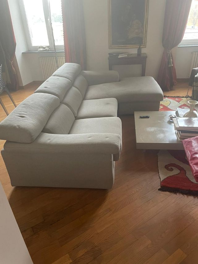 Divano in alcantara non divisibile buone condizioni con penisola estraibile. Misure 2,50 x 1,05 penisola 1,65. Ritiro a Genova Castelletto.