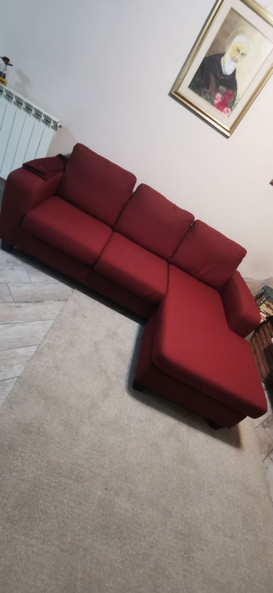 Dettagli del prodottoDivano bordeaux praticamente nuovo usato pochissimo, con penisola invertibile come da foto. Lunghezza divano 2.05 lunghezza penisola 1.50. Vendo x inutilizzo e faccio spazio. 200 euro Misure del prodotto