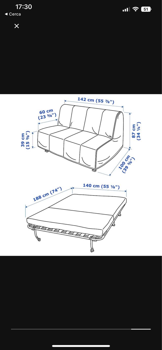 Vendo divano letto 2 posti modello Lycksele in ottime condizioni senza fodera come da foto