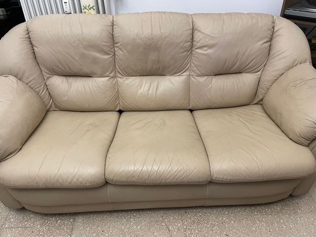 Dettagli del prodottoDivano letto color beige chiaro in pelle con letto contenitore estraibile. Misure letto interno 180x126 1 piazza e 1/2