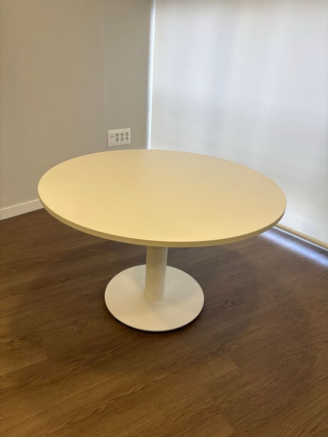 Due tavoli rotondi con guarnizioni bianche di diametro 1,20
