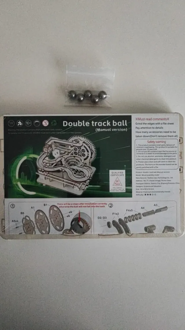 Dettagli del prodottoKit per costruire un doppio binario per biglie, versione manuale.