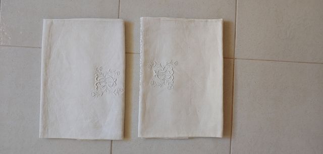 Vendo coppia asciugamani vintage in lino, anni 70, finemente lavorati