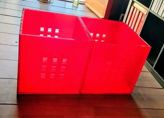 Due cubi Lekman, Ikea, per librerie Kallax, colore rosso, materiale plastica, misure 33x37x33 cm.