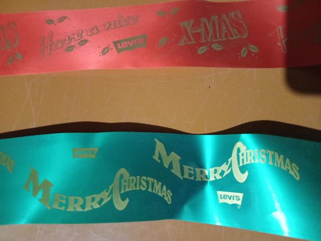 Dettagli del prodottoDue rotoli di nastro natalizio, da circa 5 metri ciascuno, originali Levi's. Misure del prodotto
