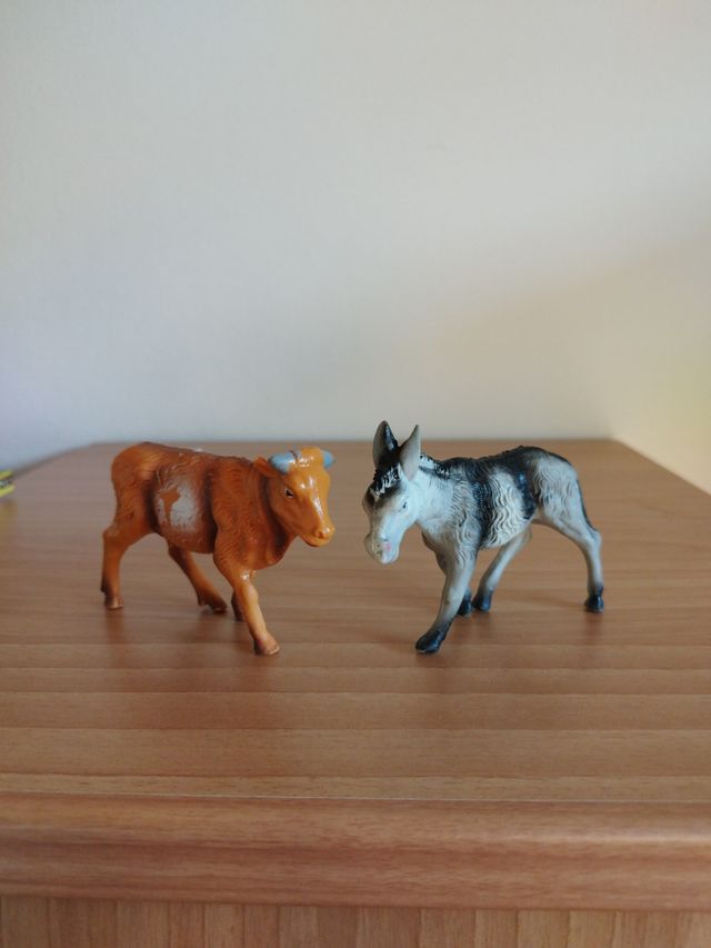 2 statue per presepe, asinello e bue