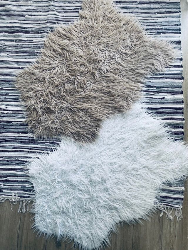 Dettagli del prodottoSi vendono due tappeti pelliccia sintetica beige e bianco. Misure circa 90x60. Prezzo per entrambi ( set di 2) Misure del prodotto