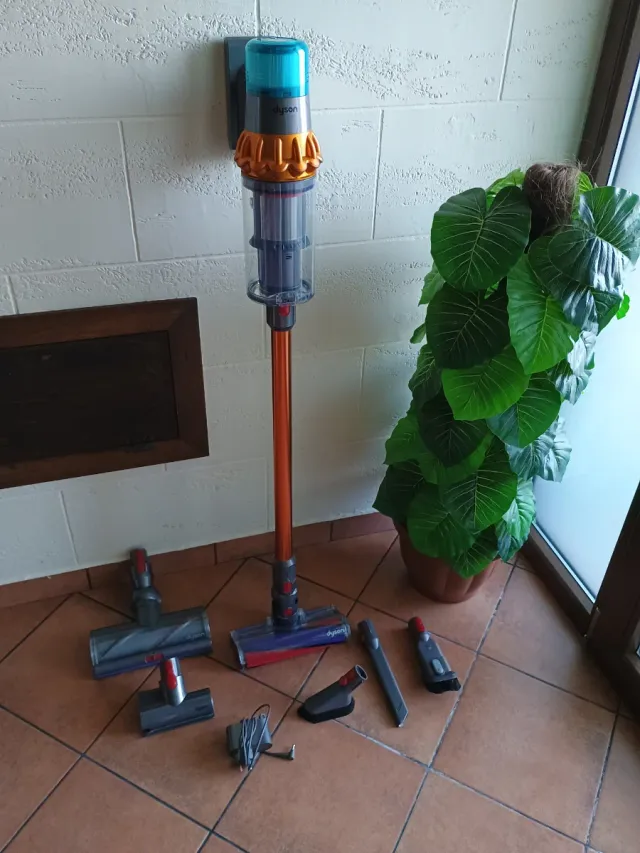Dettagli del prodottoAspirapolvere senza fili Dyson V15 completo degli accessori che si vedono in foto. Il tutto è perfettamente funzionante con una batteria praticamente nuova con una durata di circa 40 minuti in modalità automatica e 70 minuti in modalità eco. Sono comprese le tre spazzole motorizzate tra cui la spazzola motorbar adatta a tutte le superfici, la spazzola Fluffy ottima per il parquet e la mini turbo spazzola per la pulizia di divani materassi e interni auto. Non accetto offerte a ribasso.