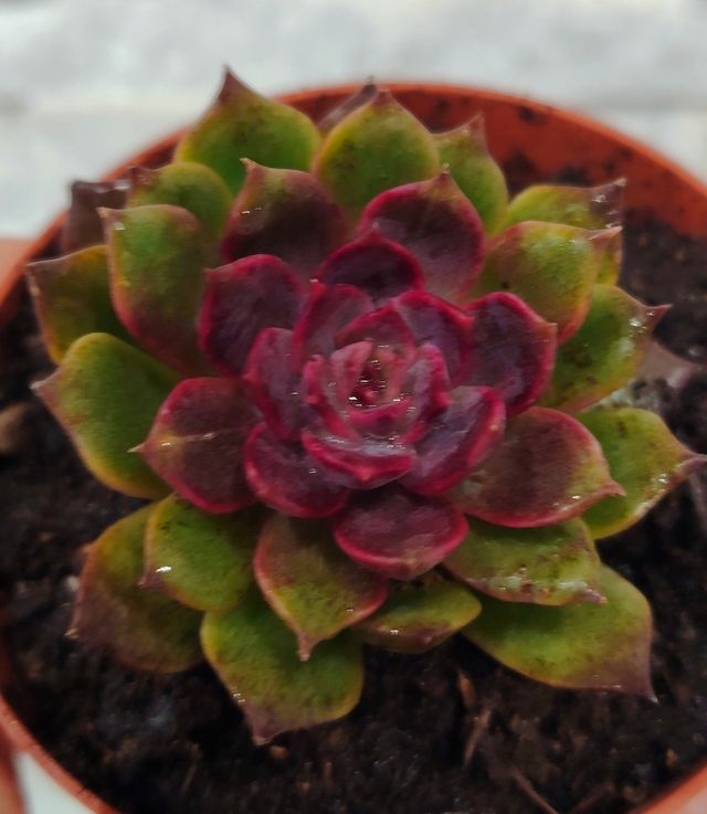 Dettagli del prodottoBellissima pianta succulenta Echeveria Sesiming, con foglie carnose che sfumano dal verde al rosso.