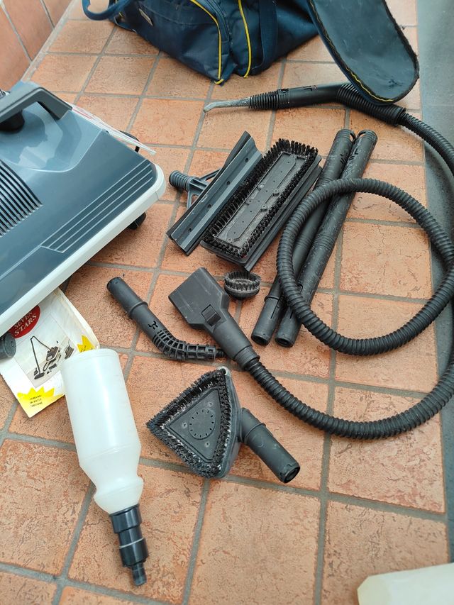 Dettagli del prodottoSet di accessori per macchina a vapore Ecovaporlux. Alcuni pezzi un po' arrugginito bisogna pulirla un po' funziona perfettamente e molto potente