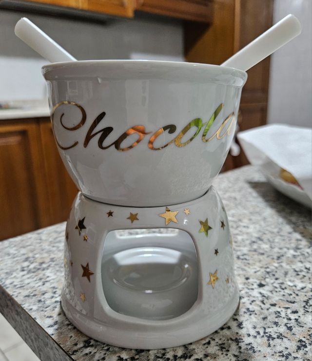 EH Excellent Houseware X-Mass. Set per fonduta al cioccolato con stelle dorate. NUOVO.