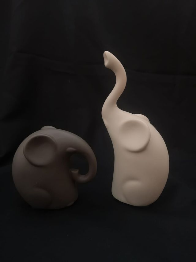 Coppia di soprammobili in forma di elefante di Clara Luna. Dimensioni: 8 cm e 14 cm