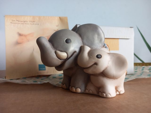 Coppia elefanti mamma con cucciolo Thun Club 2006 serie limitata con decoro sulla schiena nuovo con scatola