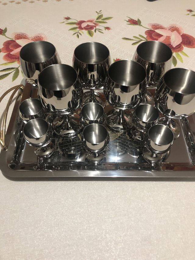 Sei bicchieri piccoli e sei più grandi AMC vassoio con manici non AMC