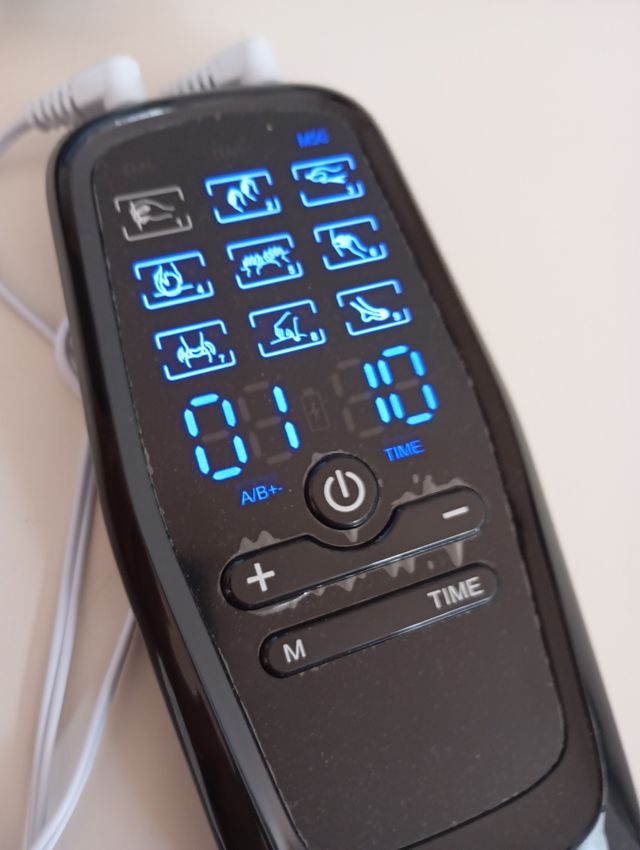 Elettrostimolatore portatile per massaggi e terapie. - Modalità EMS TENS MES - Ricarica USB. - Display digitale.