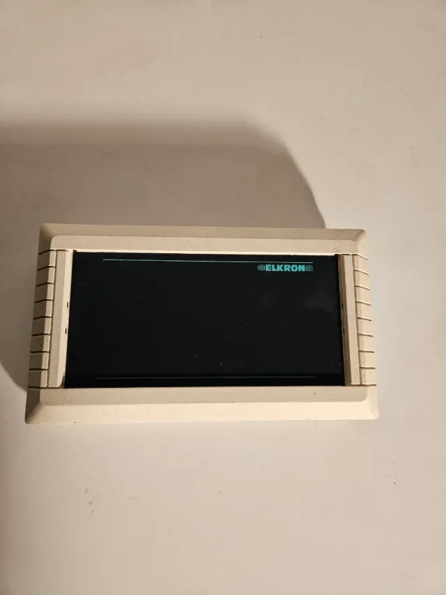 Pannello di allarme Elkron. - Modello: IT18AT - Design moderno con cornice color crema. - Schermo nero. - Logo Elkron visibile.