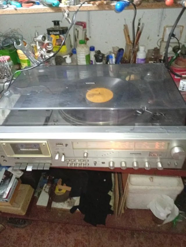 Dettagli del prodottoSet di musica vintage composto da giradischi, radio e registratore a cassetta marca WANGUAR, non spedito, ritiro in loco. Design classico argentato. Pannello frontale con pulsanti e quadranti. La descrizione è stata tradotta automaticamente.